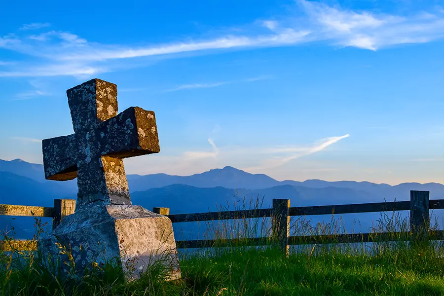 Stèles discoïdales basques dans les cimetières, église romane de Sainte-Engrâce (XIe s.), chapelles isolées sur les crêtes, une spiritualité discrète et profondément ancrée.